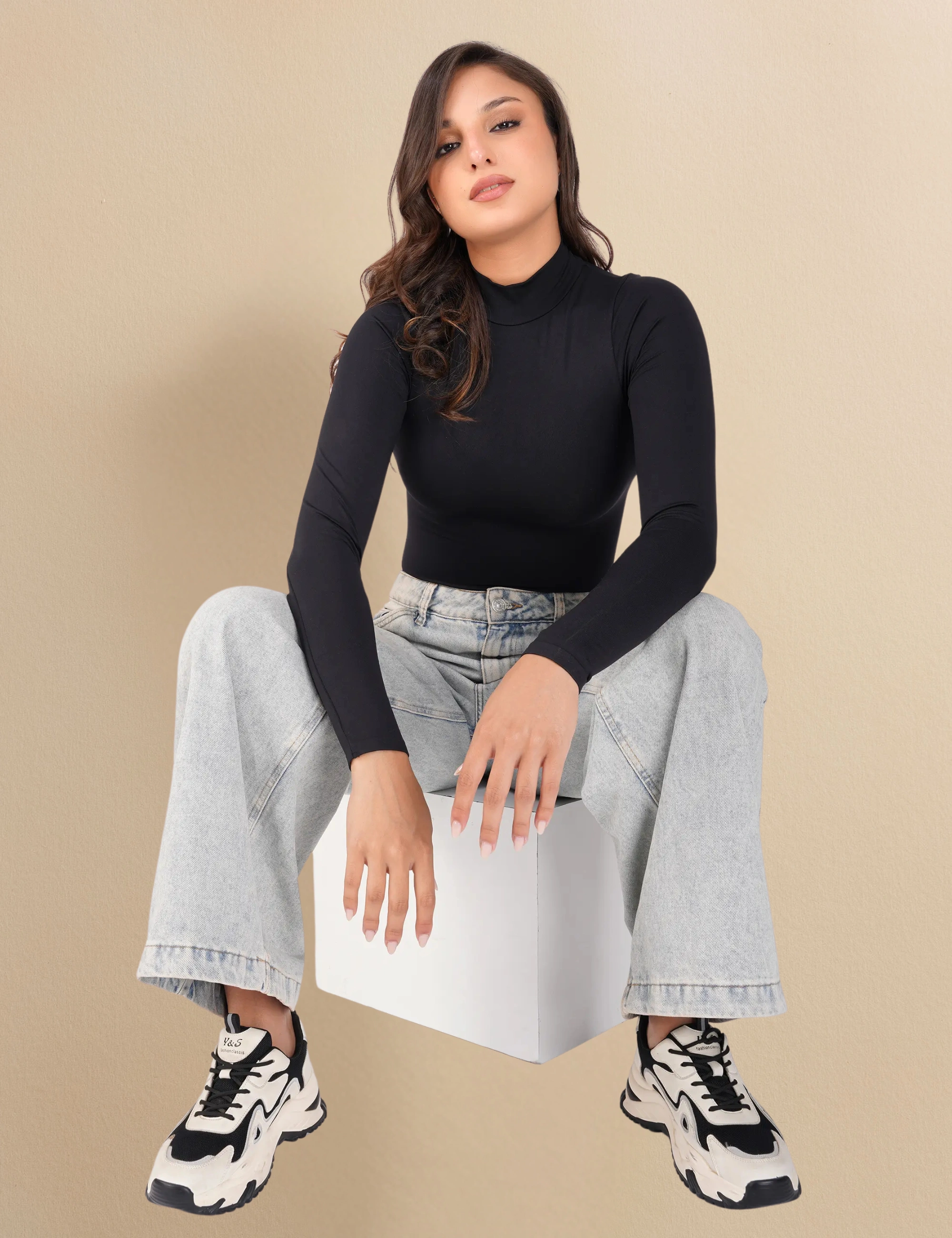 Seamless Turtle Neck Long Sleeve Shapwear Bodysuit