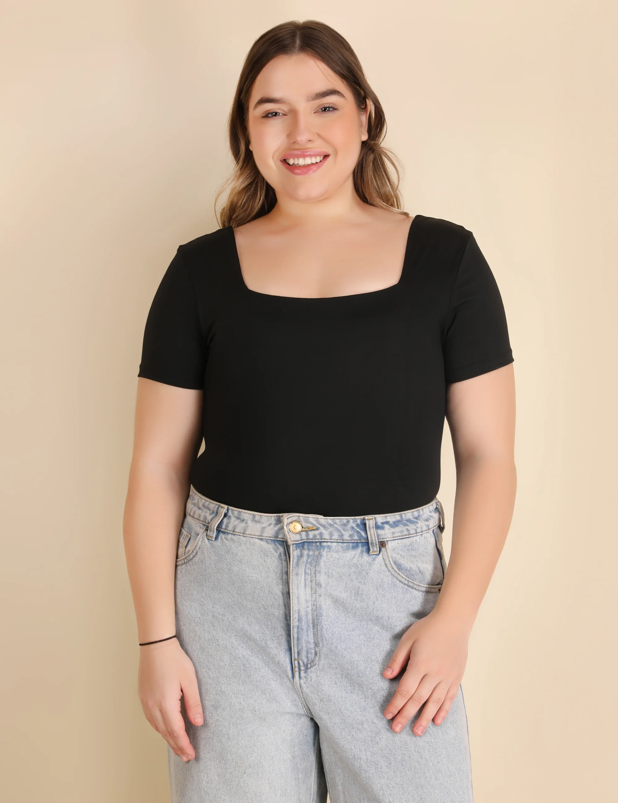 Square-Neck Short-Sleeve Tummy control Bodysuit